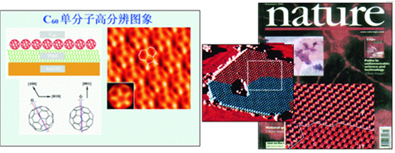 利用STM獲得的C60單分子圖像 C60二維分子取向疇 實現了單個分子內部的化學反應